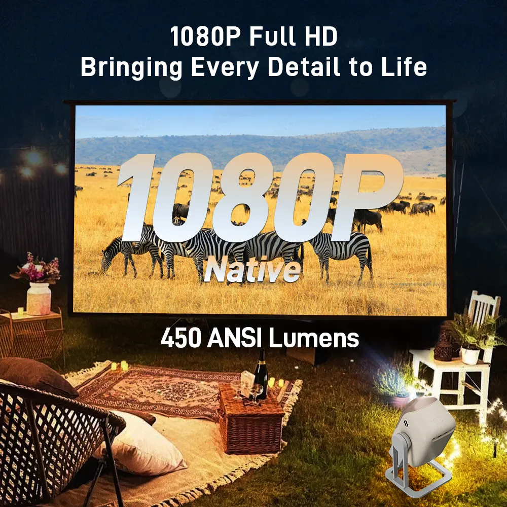 Flexible Viewing: Project anywhere with the unique 360° tilting gimbal stand. Whether on the wall or the ceiling, adjust your projector for a truly personalized viewing experience.